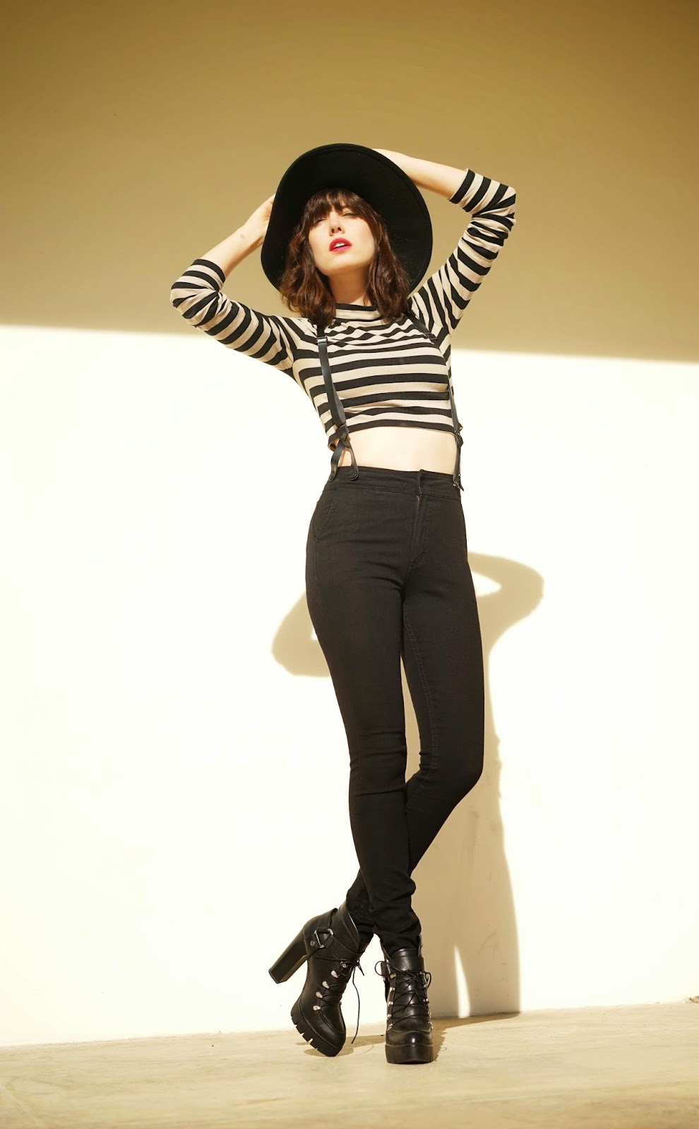 I am mad about these beautiful high waisted suspender jeans by Courtshop! The second I saw Taylor Swift sporting them I knew I had to have a pair. These fit me like a glove and they are by far the most incredible jeans I have ever had on my body. My cat eyes were made with this new liner called They're real by Benefit Cosmetics. I love this liner and I think it really helps me hone that perfect cat eye. You must check this liner out ASAP it will make your life a lot easier, trust me.