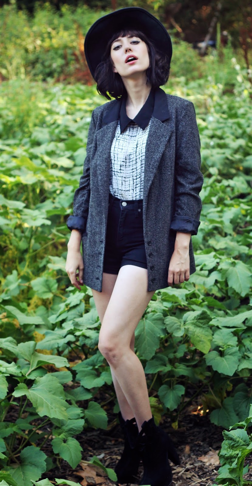 I don't really have much to say about this outfit. It's funny and cute at the same time. I love my piano suspenders a lot. My jacket is by JACK, I found it at my favorite thrift store for 2 dollars. My shorts are from ModCloth a while back when I used to model for them. My hat is vintage from my favorite thrift store again, it's real leather and was dirt cheap like $7. My boots are by Friend of Mine Au, I love them more than anything ever.