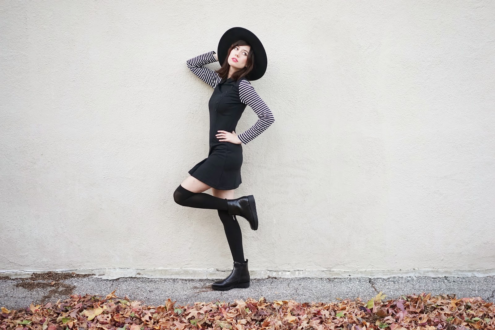 This retro 60s mod striped collared dress by Pop Boutique is absolutely incredible. Just look at all the dresses they make, they are all super vintage looking. I paired this 60s esque dress with my Sixty Seven zipper boots sold at NastyGal and my big Free People hat. I love the entire look. My sunglasses were a gift from a friend a while back, I have no idea who makes them.